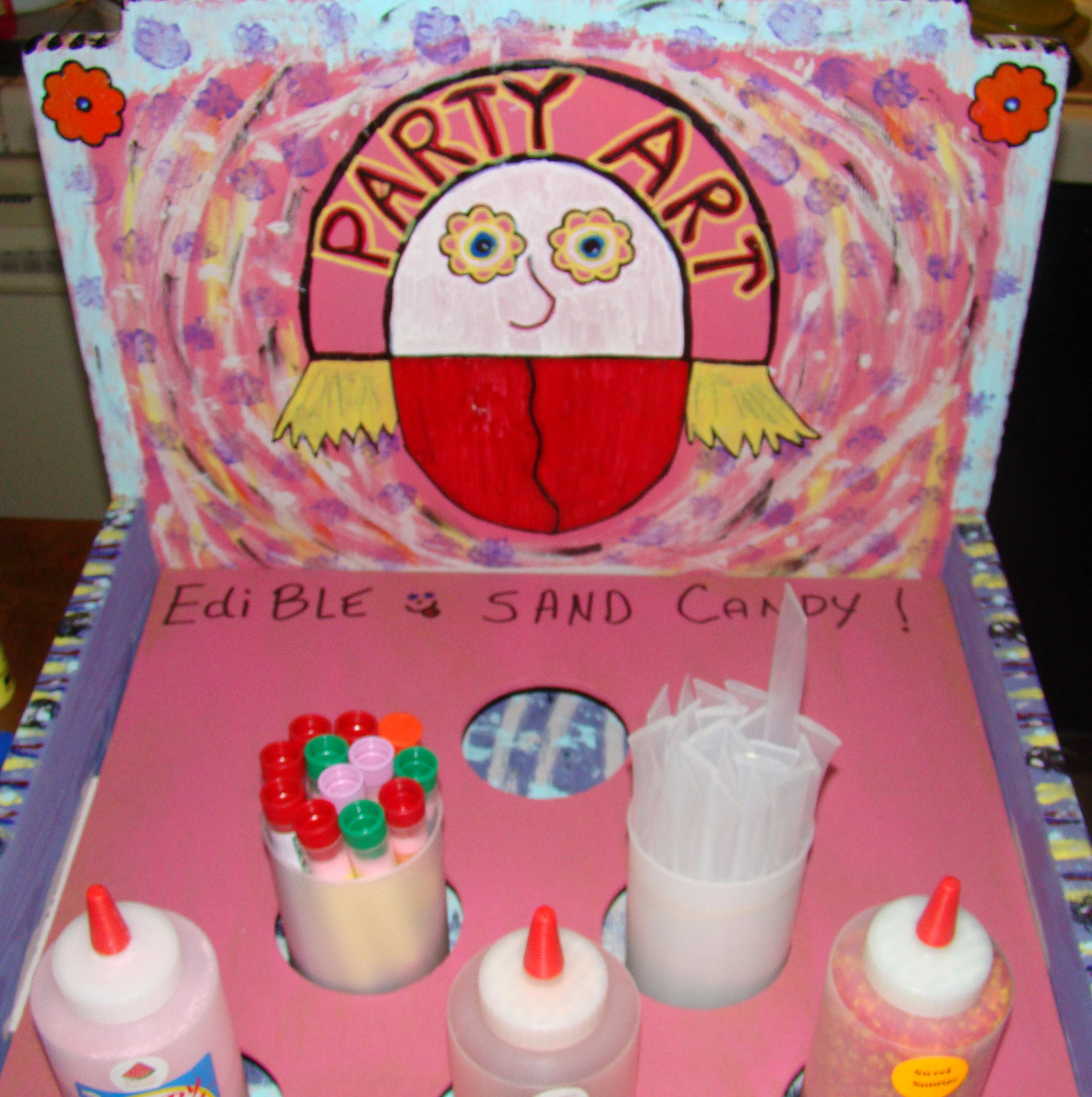 PARTY ART This is one of the BEST Fund Raisers around. You can sell the straws and let the kids fill them with sand candy. Just like sand art, only you can eat it! Double your money! If you're having a birthday party, this is a wonderful addition to your activities. Everyone loves filling these straws, even the adults! I have to admit, I've made a few for a midnight snack! :P We have kits starting at only $12 Special: 750 straws for $750 with free use of our display units (first come, first served). |